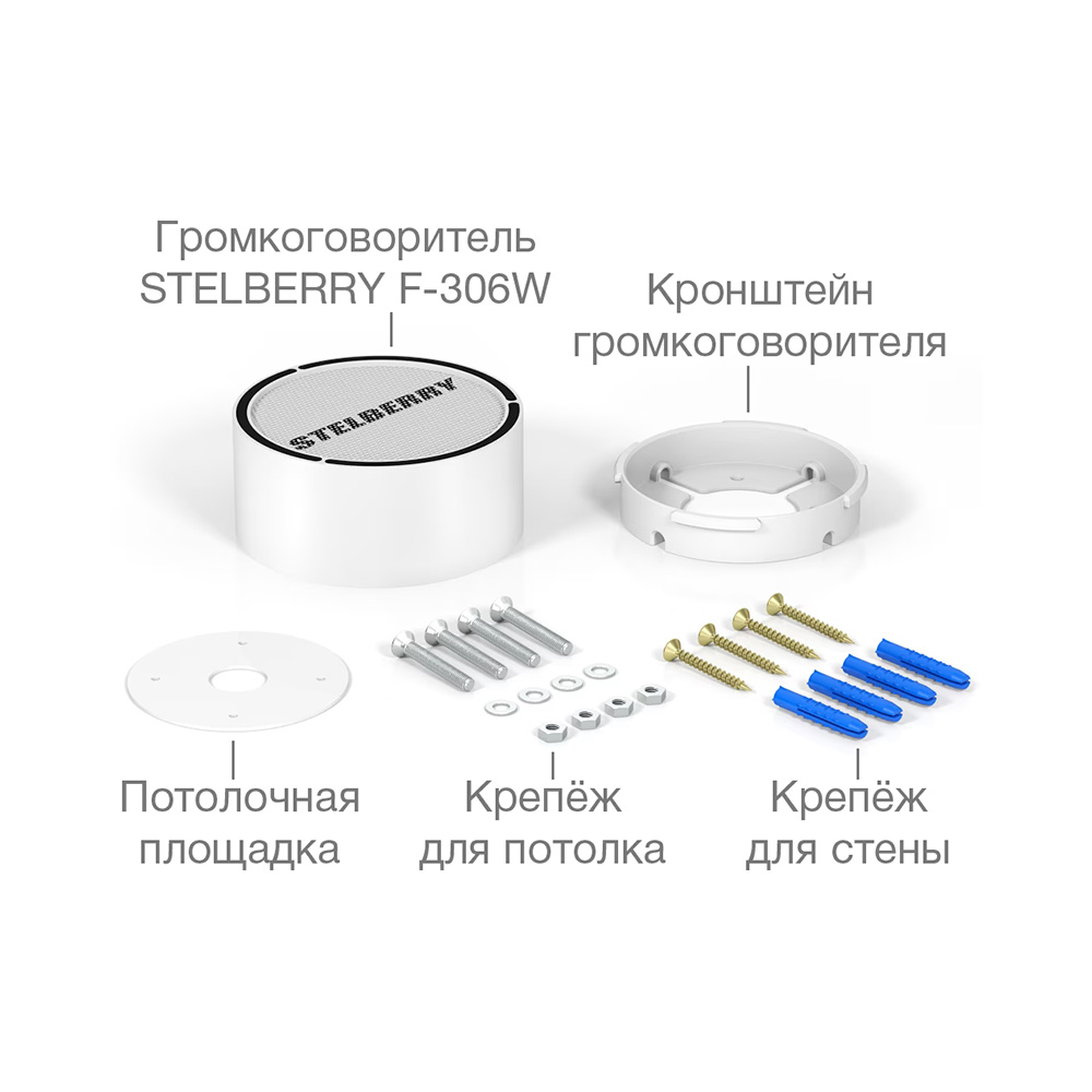 Громкоговоритель характеризуется отсутствием падения мощности на любом расстоянии в линии, вплоть до 1 000 метров. Простота и удобство монтажа облегчают установку STELBERRY F-306W, а универсальность крепления позволяют устанавливать его на потолок или стену.