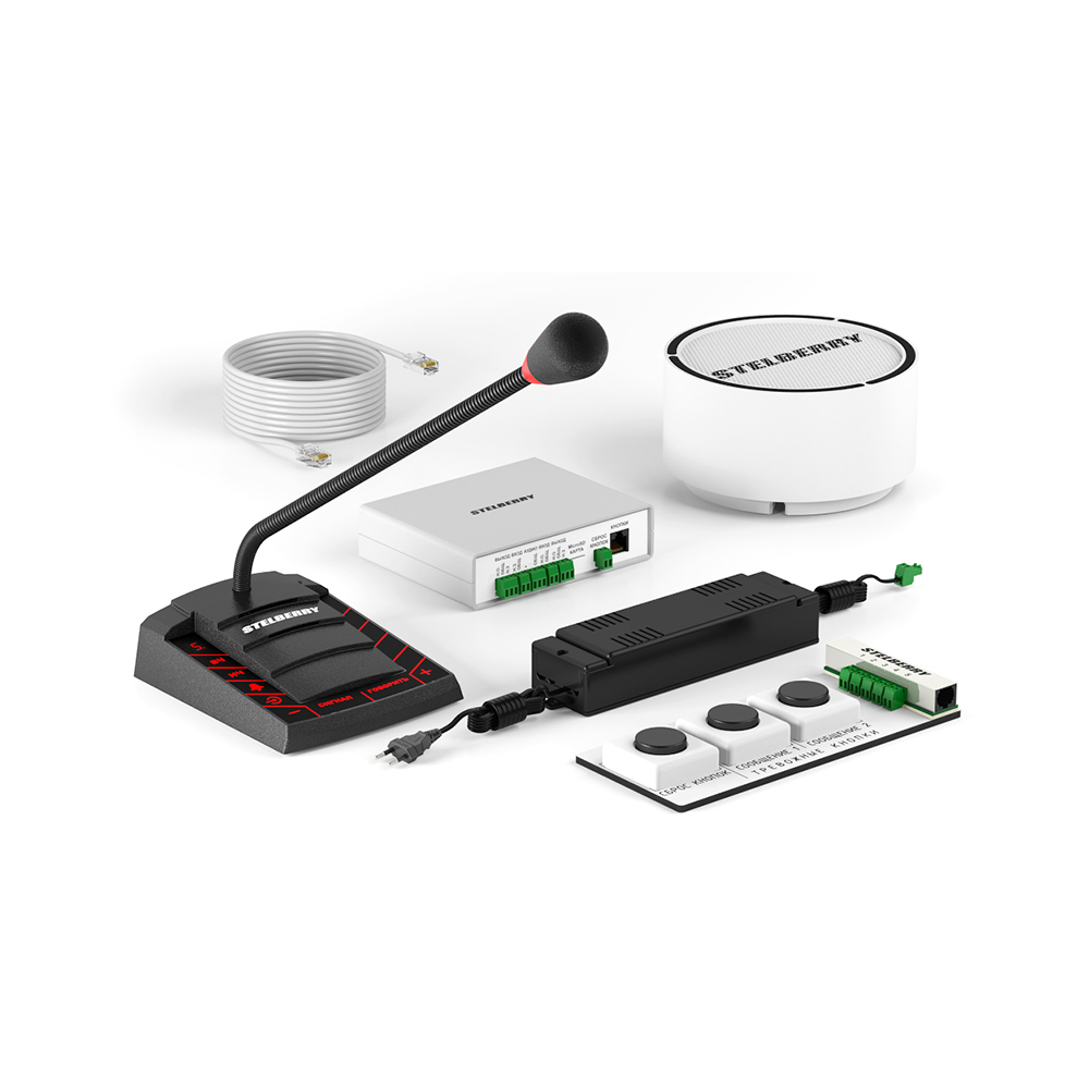 Демокомплект позволяет оперативно продемонстрировать клиенту все возможности системы громкого оповещения Антитеррор. Все компоненты системы оповещения STELBERRY Антитеррор уже подключены между собой в демокейсе.