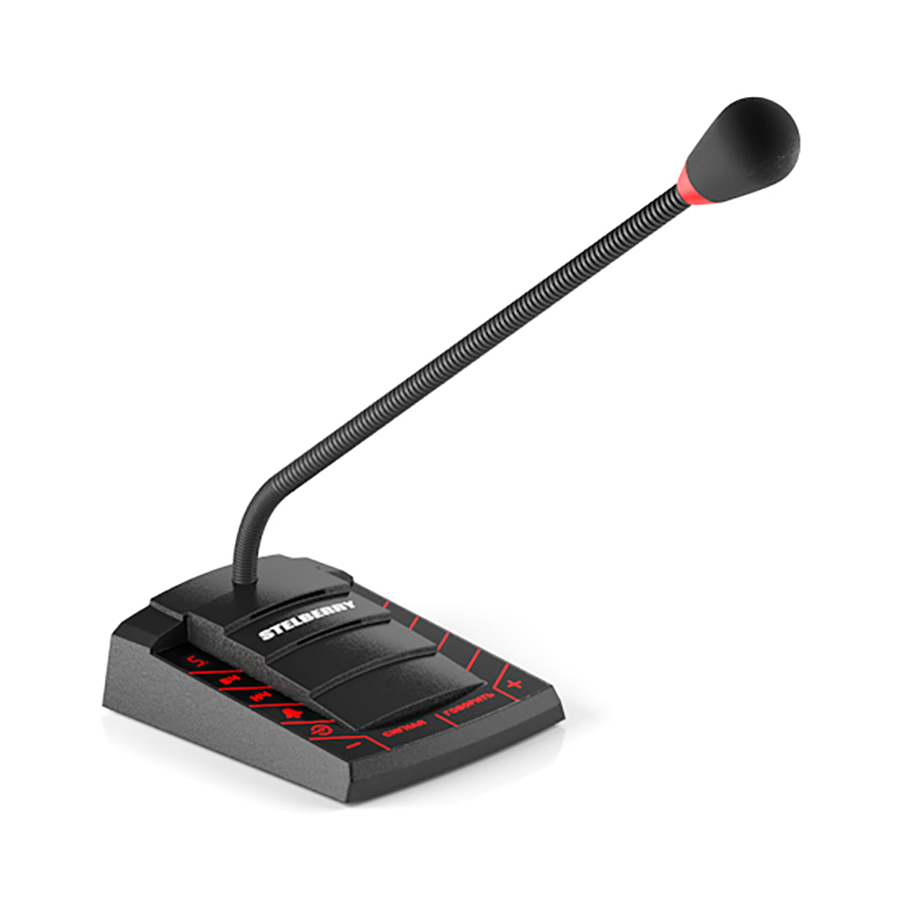 Пульт громкого оповещения STELBERRY F-220 подключается к коммутатору системы Антитеррор STELBERRY F-200. К коммутатору можно подключить до 4-х пультов. Микрофонная стойка пульта оснащена подсветкой и направленным HD-микрофоном с широким динамическим диапазоном.