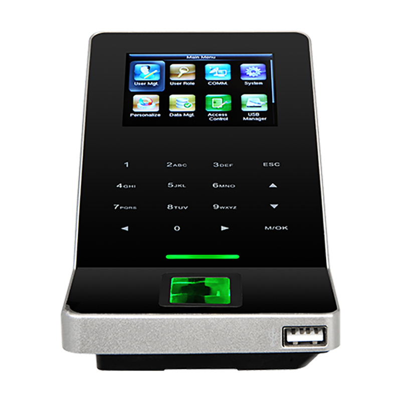 Ультратонкий терминал учета рабочего времени и контроля доступа. Чтение мокрых, сухих или поврежденных отпечатков пальцев. Дисплей цветной 2.4" TFT. Память шаблонов отпечатка пальца 3 000. Память RFID карт 5000.Опционально считывтаель RFID карт Em/MF.Память журнала событий 30 000. Интерфейсы: RS232/485, TCP/IP, USB-хост,Wi-Fi. Входы\выходы: дверной замок, дверной датчик, кнопка выхода, «тревожный» выход, Wiegand Вход\ выход AUX Вход-1 Питание.