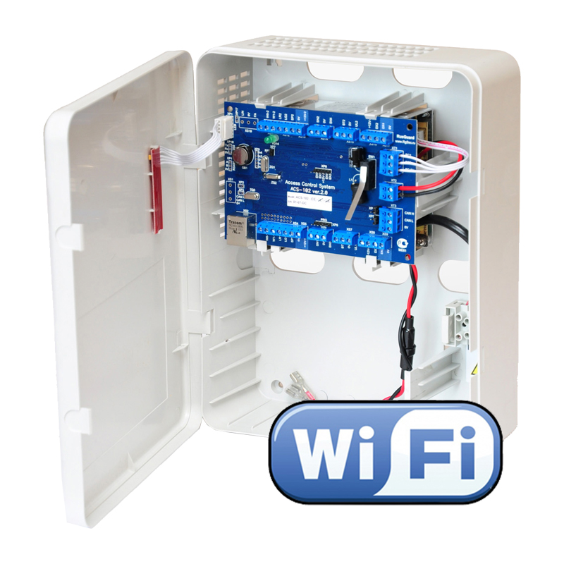 Сетевой контроллер, интерфейс связи c сервером: Ehternet 10/100 Base-T, CAN-HS, 2 интерфейса считывателей: TM, Wiegand-26/37/44/50 + 1 интерфейс считывателя картоприемника: Wiegand. Интерфейс клавиатуры (PS\2, KBW), память контроллера: до 64 000 ключей\ до 60 000 событий, 8 иполнительных программируемых реле, 2 охранных шлейфа, температурный режим от 0 до +50, пластиковый корпус, встроенный блок питания 2,5А (место для установки АКБ 7Ач), встроенный WiFi модуль (точка доступа).