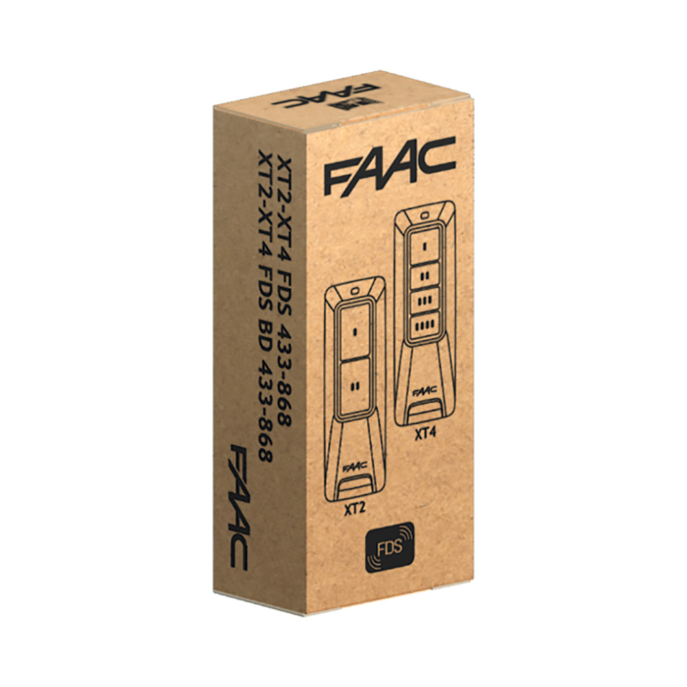 FDS = FAAC DIGITAL SIGNATURE: Радиопротокол на основе частотной модуляции с оптимальными характеристиками в отношении автономной работы и срока службы батареи; радиопередача защищена алгоритмом симметричного шифрования AES-128 со 128-битным ключом. Подлинность передатчиков подтверждается рядом сертификатов безопасности FAAC.