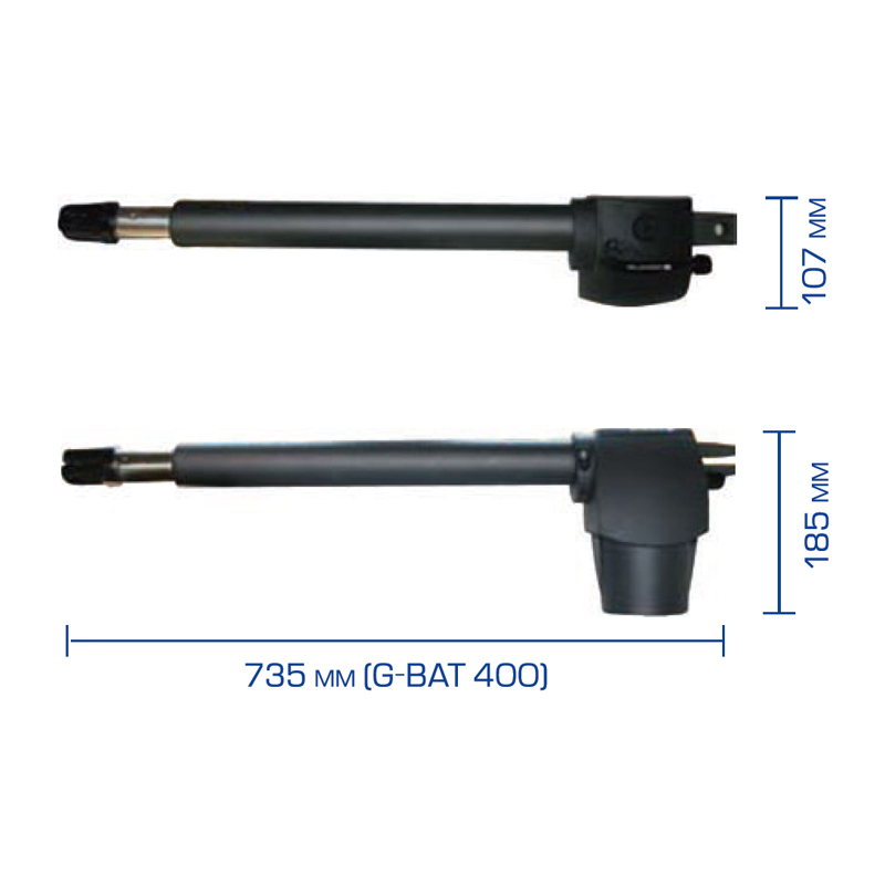 Комплект из нереверсивных 2-х приводов для распашных ворот (G-Bat 400 LH 6170031 левый и G-Bat 400 RH 6170030 правый), 230В, усилие 3500H, 280Ватт, ход штока 400мм, скорость штока 16мм/сек, интенсивность 30%, время открытия 24 сек, высокопрочный редуктор из бронзы и стали, -40..55 град.