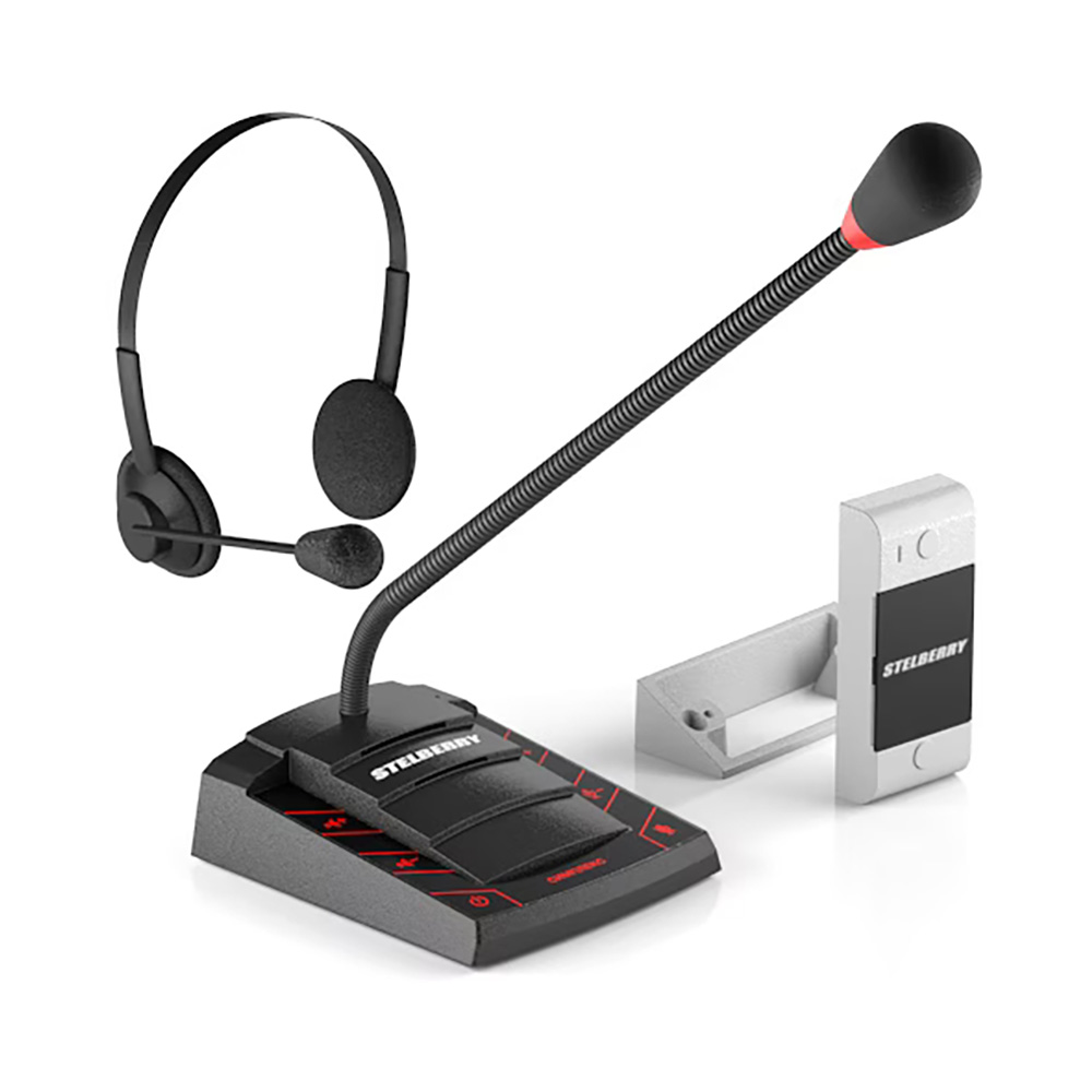 При отключенной гарнитуре, антивандальное переговорное устройство Stelberry S-412 работает в громкоговорящем режиме работы. При подключении гарнитуры, идущей в комплекте, пульт кассира автоматически переключается на работу с ней, отключая внутренний динамик и микрофонную стойку. Следует отметить,что кассир может управлять громкостью наушников и чувствительностью микрофона гарнитуры при помощи клавиш сенсорного меню, расположенных на пульте оператора переговорного устройства клиент-кассир Stelberry S-412. В кассовых узлах с близким расположением рабочих мест кассиров, соседние пульты могут оказывать сильное негативное воздействие друг на друга в режиме громкой связи. Применение в таких кассовых узлах переговорных устройств с гарнитурой Stelberry S-412, гарантирует отличную связь клиент-кассир, а использование режима «симплекс», во время высокого уровня окружающего шума, обеспечивает высокую разборчивость речи собеседников, что особенно актуально при диалоге пассажир-кассир.