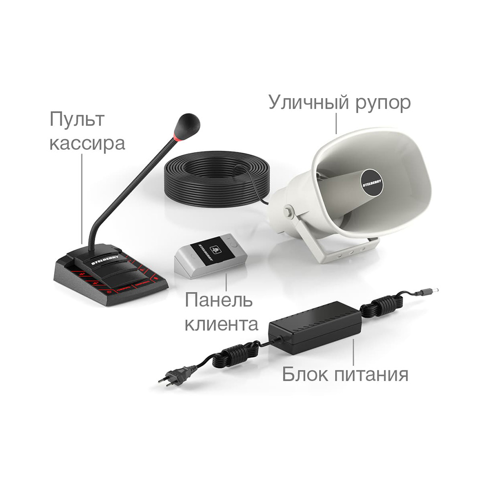 Комплект переговорного устройства клиент-кассир для АЗС с системой громкого оповещения STELBERRY S-525 в первую очередь предназначен для комфортного общения кассира с клиентом через кассовое окно закрытого типа с передаточным лотком, либо через кассовое окно открытого типа, с условием монтажа панели клиента и установки пульта кассира на расстоянии звукового пути не менее двух метров друг от друга.