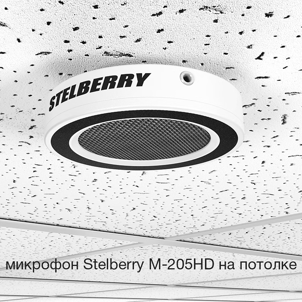 Потолочно-настенный HD-микрофон с выходом для наушников, речевым фильтром и АРУ. Микрофон STELBERRY M-205HD устанавливается на потолок или стену и подключается к аудиовходу IP камеры.