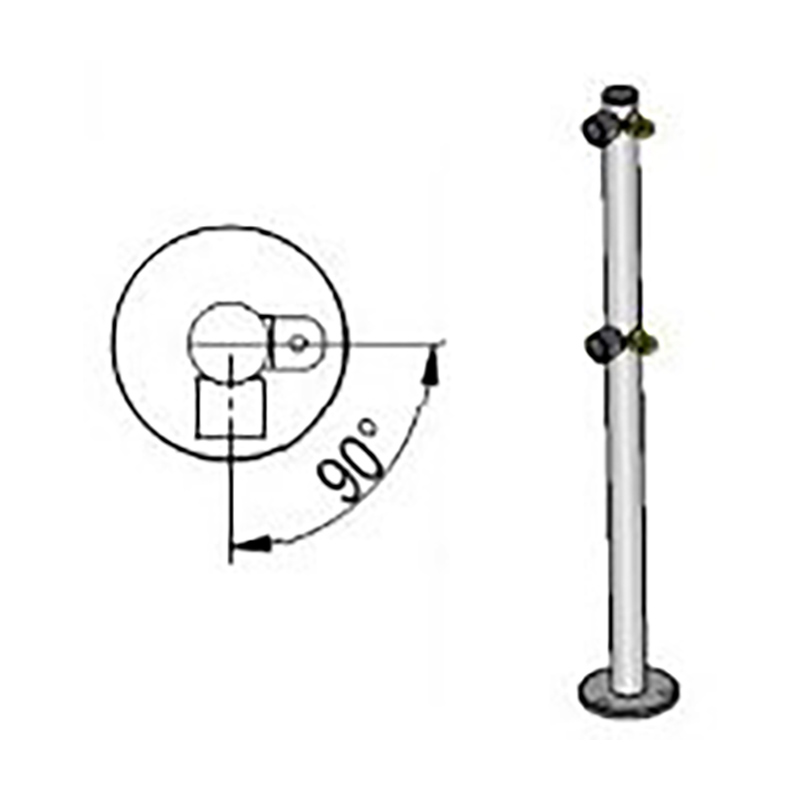 Стойка ограждения L-образная с 2-мя полупетлями под поворотную створку или секцию и 2 муфты справа, образуя угол 90°