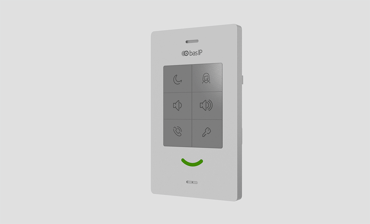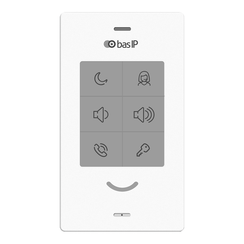 Абонентское IP аудио устройство, протоколы: SIP, P2P, BAS-IP, кнопки: вызова консьержа, открытия замка, режим "Не беспокоить", регулировка громкости, световой индикатор состояния и режимов работы, подключение кнопки звонка, питание PoE IEEE 802.3af и +12 Вольт, цвет - белый.