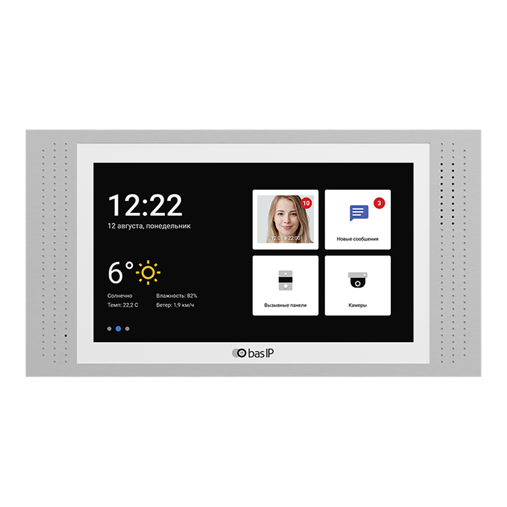 Видеодомофон индивидуальный с сенсорно-ёмкостным экраном 7" IPS, разрешение: 1024x600, c внутренней памятью (фото), с возможностью подключения: датчиков сигнализации, фоторамка, проигрыватель видеофайлов, умный дом. Без камеры. Подключение кнопки звонка. Управляемый выход при поступлении входящего звонка, возможность установки сторонних приложений и приложений для "Умного дома". Встроенный Web-браузер. Просмотр до 32 камер. Питание: PoE и + 12В (БП в комплект не входит). Поддержка: SIP P2P. Встроенный Wi-Fi (2.4GHz, IEEE 802.11 /b/g/n). Интеграция с АСКУЭ. Накладной монтаж, и врезной монтаж с помощью дополнительного кронштейна. Цвет - золото.