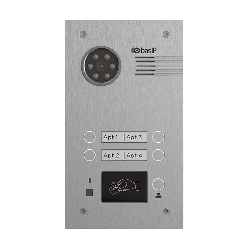 BAS-IP BA-04MD SILVER — это 4-х абонентская панель, которая прекрасно объединяет в себе доступность, красивый и стильный дизайн, а также прекрасные технические характеристики. Возможна комплектация мультиформатным считывателем за дополнительную плату.