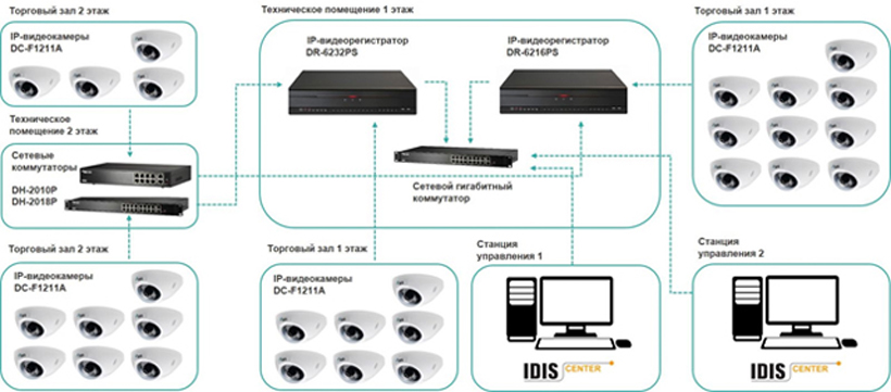 Для оборудования кассовых зон были выбраны IP-видеокамеры DC-D1223R, оснащенные вариофокальным объективом с фокусным расстоянием f=3.3-10 мм и интеллектуальной инфракрасной подсветкой (дальностью 20 м) с автоматической регулировкой, что позволяет получать высококачественное видео с разрешением Full HD со скоростью 30 кадров/с. Благодаря высокому качеству изображения, сотрудник службы безопасности магазина может при просмотре записи в архиве четко видеть продаваемые товары, номинал купюр при расчете на кассе, а также полностью контролировать все действия персонала на кассовом узле, что особенно важно в розничной торговле.