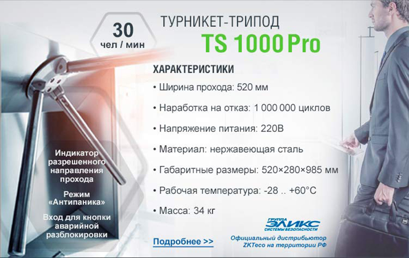 Турникет ZKTeco TS1000 Pro по специальной цене!