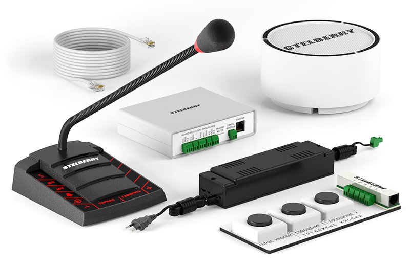 - Блок кнопок тревожных сообщений и сброса с расширителем тревожных кнопок STELBERRY F-211.