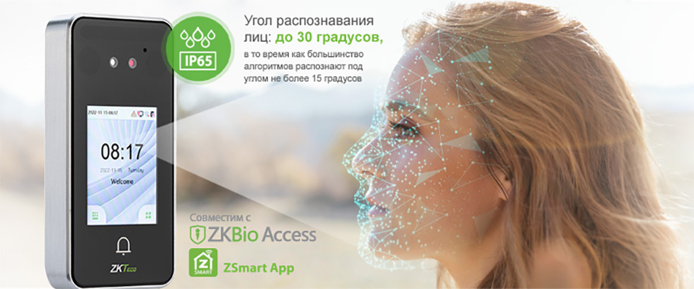 Дистанция распознавания лиц: от 0.3 до 1.2 м, что позволяет идентифицировать быстро идущих людей.
