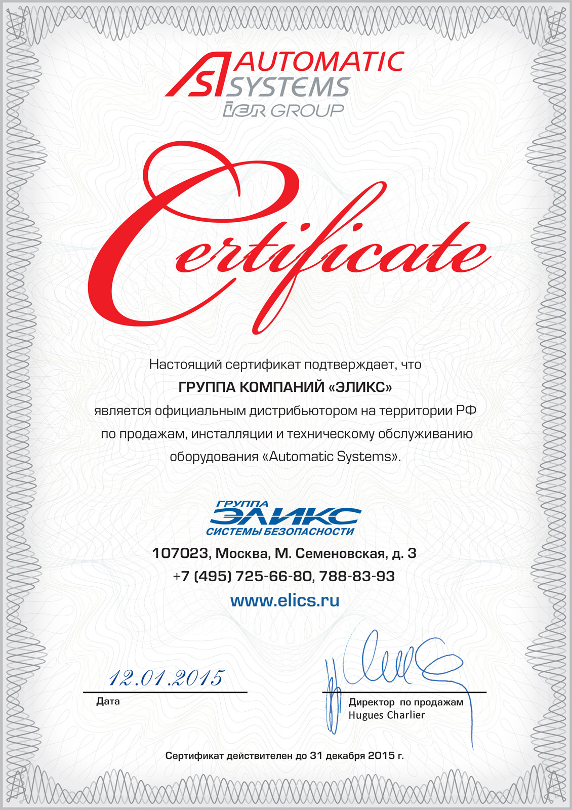 Дистрибьюторские и партнёрские сертификаты выданные группе компаний «Эликс» ведущими российскими и зарубежными производителями систем безопасности.