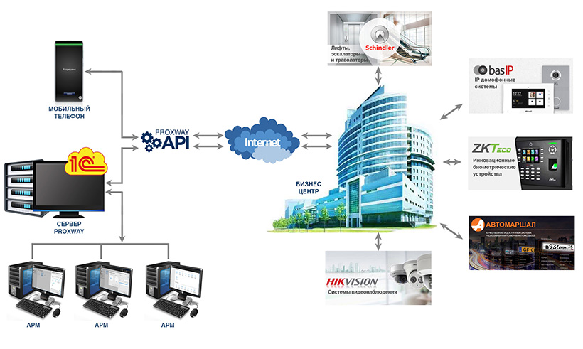 Очень часто владельцы или арендаторы бизнес-центров имеют построенную систему контроля доступа, и им не хватает какого либо модуля или дополнительной интеграции. Кастомизация СКУД ProxWay под частные задачи наших клиентов, является одной из главных и эффективных задач при построении СКУД. В настоящий момент в СКУД ProxWay реализованы следующие интеграции.